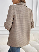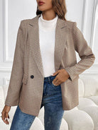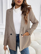 Breng een verzorgde uitstraling in je garderobe met de dames geruite blazer, ontworpen voor een nette overgang van dagelijkse momenten naar meer formele situaties. Met een dubbelrijig ontwerp en een duidelijk silhouet biedt deze blazer een moderne interpretatie van een klassiek kledingstuk. Het geruite patroon zorgt voor een gestructureerde visuele indruk, terwijl de veelzijdigheid ervoor zorgt dat het eenvoudig in uiteenlopende outfits past, van dagelijkse combinaties tot meer representatieve gelegenheden.